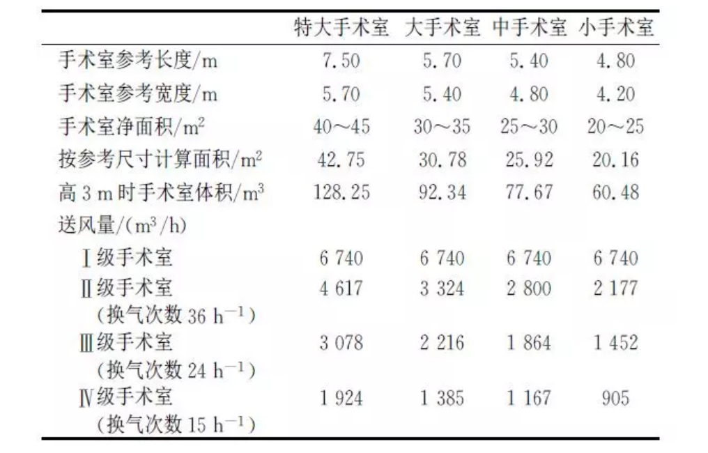 表1根據《醫院潔淨手術部建設標準》計算的送風量