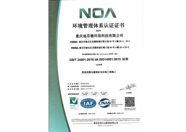 重慶迪芬德環保科技有限公司,成立於2012年9月。公司擁有建築裝修裝飾工程貳級、建築機電安裝工程貳級、消防設施工程貳級資質,並通過ISO 9001質量管理體係、ISO 14001環境管理體係、ISO 45001職業健康安全管理體係認證,是專業從事空氣淨化類的高科技企業,公司秉承“科技創造價值、超越客戶期望”的理念。