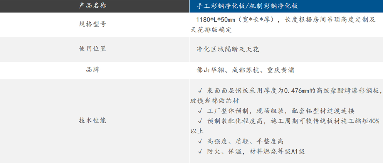 手工彩鋼淨化板/機製彩鋼淨化板