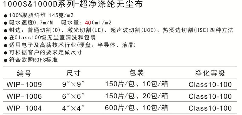 1000S/1000D係列-超淨滌綸無塵布