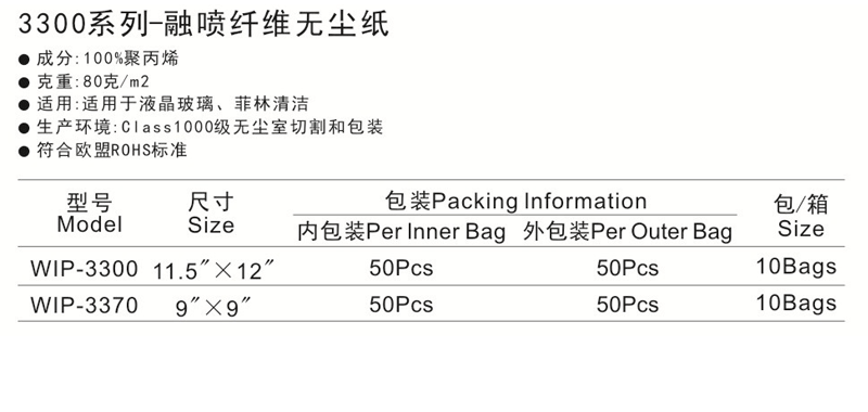 3300係列-融噴纖維無塵紙