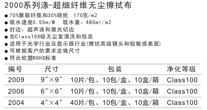 2000係列滌-超細纖維無塵擦拭布