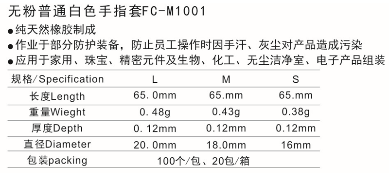 五粉普通白色手指套FC-M1001
